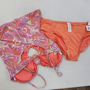 Jessica Simpson tankini with Time and Tru bottoms. size 16-18. mismatch brands that look great together. sold as a set. Top os pre-loved, brand new bottoms.