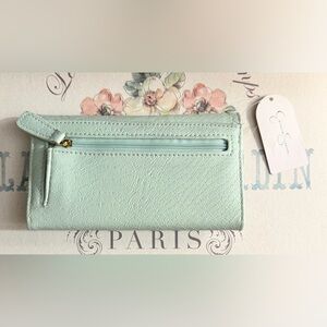 This stylish mint green wallet is perfect for any occasion. Its elegant design and chic color make it a must-have accessory. Perfect condition