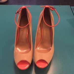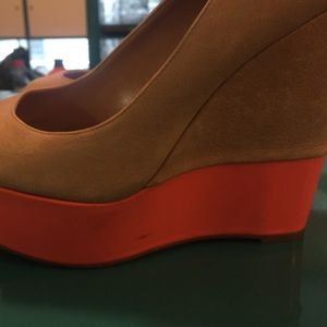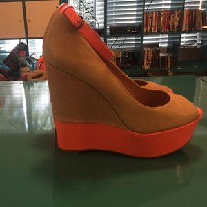 Cute nude and orange wedges perfect for spring and summer!!! Adds a cute pop of color, barely worn, has a few small scuffs that I tried to show with pictures but overall in great shape