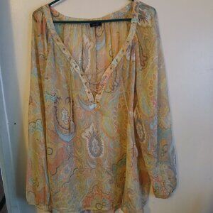 Jessica Simpson women's yellow retro 60's print blouse No size tag