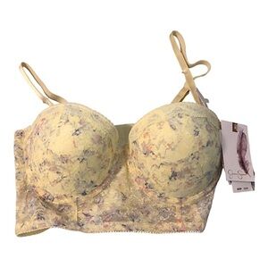 Jessica Simpson yellow floral watercolor sexy Lace underwire bustier style convertible Bra size 34B new