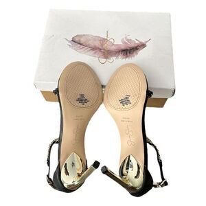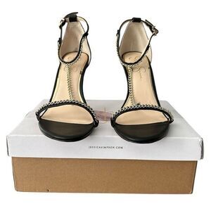 Jessica Simpson Black Chain Strap Heels Italia Napa Style JS - QIVEN Women’s 8.5