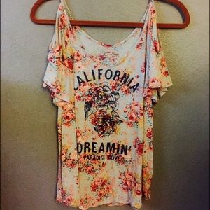Jessica Simpson Active Relaxed Floral cut out shoulder Blouse, Comfortable cute and Flirty.