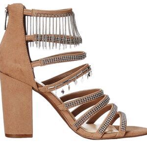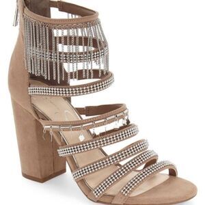 Jessica Simpson Katalena jeweled taupe block Heels D16