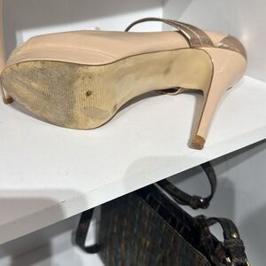 Chic nude platform heels with peep-toe design. Stylish and versatile for any occasion.