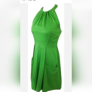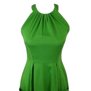 Jessica Simpson~Size 2~Green Halter Dress Fit and Flare, Backless, Pockets.