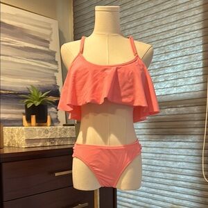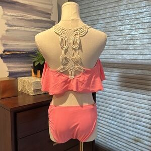Jessica SimpsonTwo Piece Cami Flounce Fancy Back Bikini Swimsuit Peach. Size M