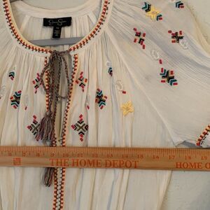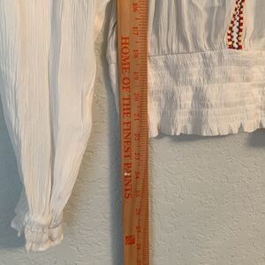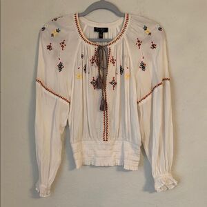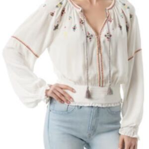 Jessica Simpson White Embroidered Long Sleeve Tie Front Blouse Top Size XS