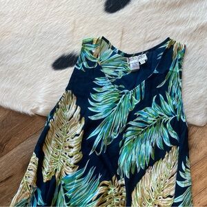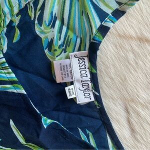 Jessica Taylor dress with a tropical leaf pattern, 100% rayon