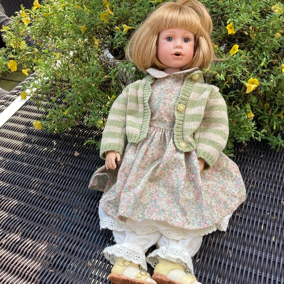 Jessica doll, she stands 18 inches tall and her face, hands and feet are made of porcelain. She is very cute and needs someone to love her and maybe fix her hair.