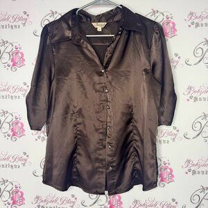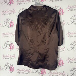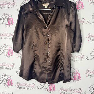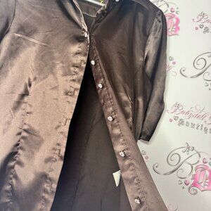Elevate your wardrobe with the Jessica Brown Satin Women's Top. This elegant piece features a rich brown color, perfect for any occasion. Size large. Has belt loops. Get ready for an abundance of compliments! π Youβll be celebrated for your exceptional taste! π