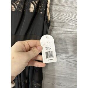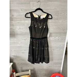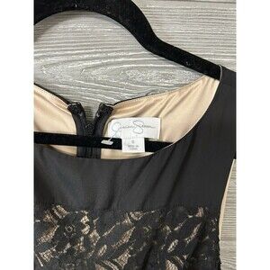 This Jessica Simpson dress is a size 8 with a beautiful black lace design, perfect for various occasions like parties, casual outings, or business events. The sleeveless dress features a zip closure, a knee-length fit and flare style, suitable for the summer, fall, and spring seasons. The material and fabric type are labeled on the tag, presenting a chic and versatile option for women looking for a stylish wardrobe staple.