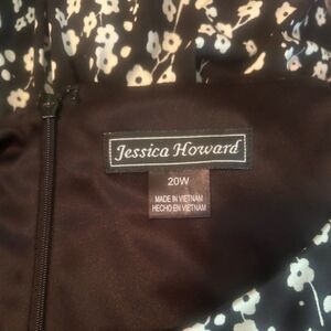 Jessica Howard Black/White Floral elastic waist sleeveless dress, size 20W (95% Polyester, 5% Spandex, Lining 100% Polyester)