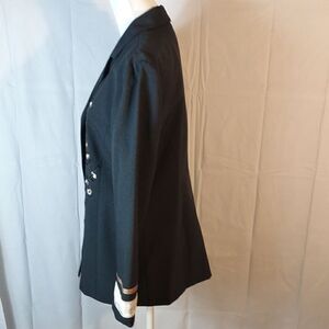 This dark gray button down floral embroidered Jessica Howard blazer is a size 12 with a pit to pit measuring 20.5". In excellent preloved condition. All offers are welcome.