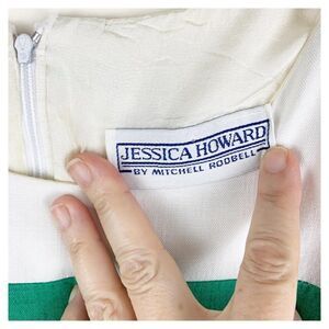 Jessica Howard by Mitchel Rodbell Vintage Sleeveless Linen Broad Blue/White/Green Stripes Sheath Dress Sz 4 EUC. throw on a jacket and you are ready for the office/work/career. Add sandals and head to the party or wedding. Dinner out on vacation? Lining has yellowed but the dress itself in in great shape as shown. Please see photos for additional details.