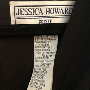 Women’s black Jessica Howard beaded midi dress, NWT. Vee neck plunges to a beaded accent with suede like accent below. Hidden back zipper. Bundle and save!