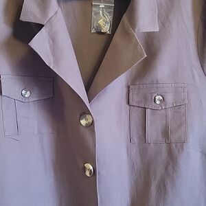 Jessica London- Linen/Rayon brown collared button down front Jacket 26W. NWT.