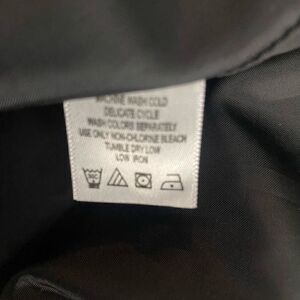 Long sleeve gold button adorned fold over collar gold button down front pockets shoulder padded fully lined Jacket only of a three piece set