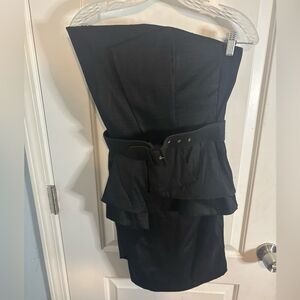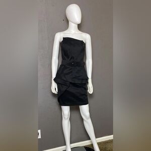 Jessica McClintock VINTAGE Black Strapless belted mini Dress size 6 EUC