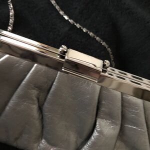 Beautiful graphite colored bag with shoulder length chain and snap closure. Like new in EUC from smoke free home.