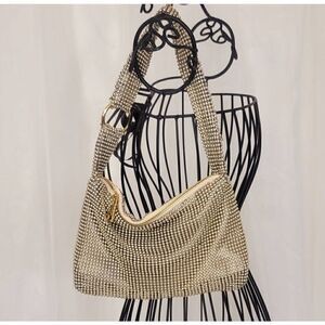 Gold metal beaded evening bag . Missing beads on strap. Vintage bag