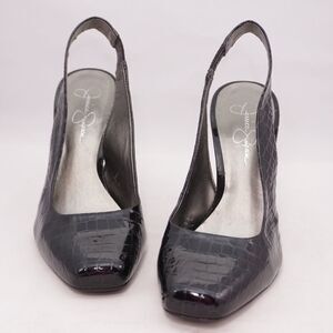 Jessica Simpson Black Croc Leather Slingbacks, 8.5