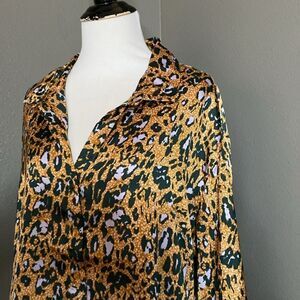 Jessica Simpson Leopard Button Down Blouse Speckled Cheetah Bodie