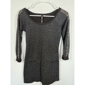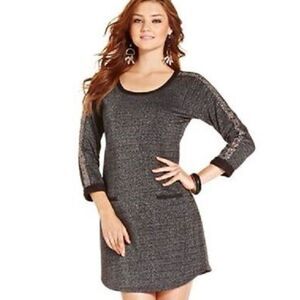 Jessica Simpson Long Sleeve Metallic Sleeve Detail Knit Dress Size X Small