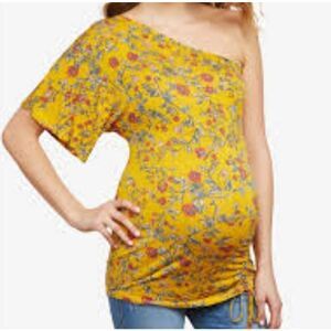 Jessica Simpson Maternity Top Floral Flutter Sleeve Tie Detail Yellow Size Small