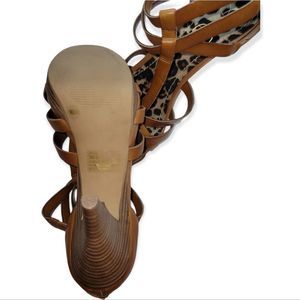Jessica Simpson Sandals Camie Brown Size 9B open toe sandals with strappy vamp and elastic ankle enclosure with back zipper 1/2" stacked platform 3 3/4" stacked heel leopard insole like new excellent condition leather upper🔥