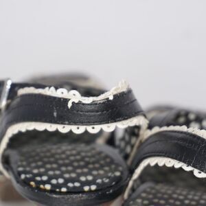 Black with white trim and wooden stiletto heel