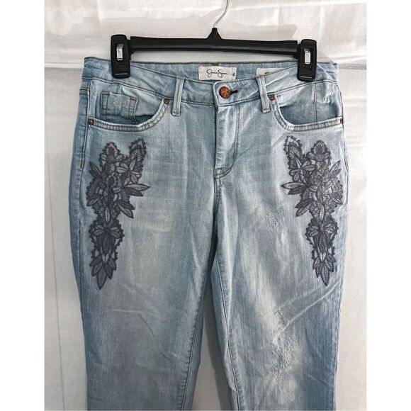 Jessica Simpson jeans || size 26 || adorable floral detailing in front || excellent condition ||