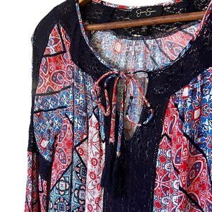Excellent condition Jessica Simpson top. Lightweight and flowy, tied front with tassels, lace details. Please don’t hesitate to ask me for any details!