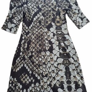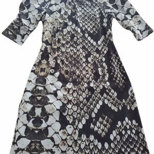 Green Black Brown Color, 4 Size, Snake Print, Above The Knee Length, Midi, Fitted, Polyester Material, Full Lined, Short Sleeves, Puff Sleeves, Ruched Sleeves, With Pleats, Thick Material, Back Hidden Zipper Closure, Perfect Fit, Fall/Winter Wear, Cocktail/Party Dress, Gently Wear, Exellent Condition.