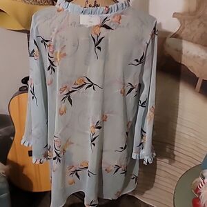 Jessica Simpson Mint Floral Sheer Maternity Blouse Size L