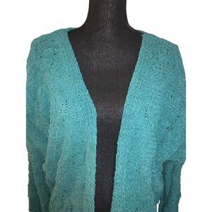 Pine green open front knitted cardigan. Soft fabric. Long sleeve with cuffed hem. 100% polyester. Size: small. NWT.
