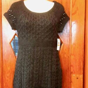 NEW WITH TAGS Charcoal grey with beaded short sleeves. Excellent condition. Would be cute with tights and boots! Knee length