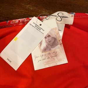 Size Med | pepper Multi ( red floral ) | 84% Polyester, 16% Spandex | hand wash | Side Shirred Hipster