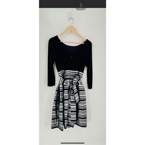 Jessica Howard long sleeve , scoop neck , fit& flare , lined dress , with another layer of twill to give it body , low v neck in the back.