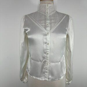 Jessica's Gunnies Gunne Sax Size S/M? Ivory Cream Lace Sax Button High Neck Blouse
