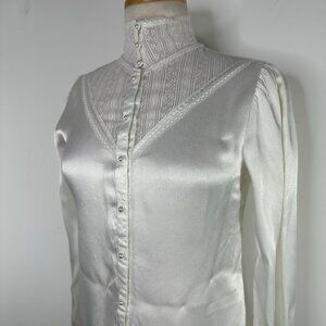 Jessica's Gunnies Gunne Sax SZ S/M? Ivory Cream Lace Sax Button High Neck Blouse