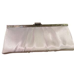 Jessico McClintock Silver Satin Clutch, Evening Clutch, Drop Chain, Clasp
