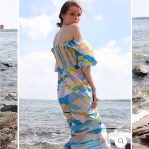 Designed in a lightweight cotton-silk fabric, hand illustrated floral dress features puff sleeves, a smocked bodice, and an easy fit-and-flare shape. You can wear it with the sleeves on or off the shoulder.