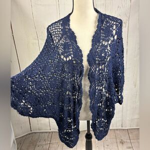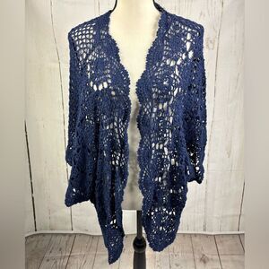 Jessika London Navy Crocket Knit Cardigan Coverup Open Front Ramie Cotton