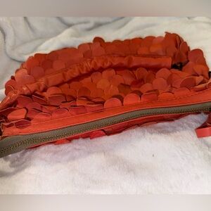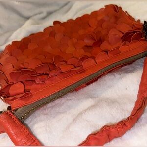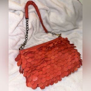 Jesslyn Blake orange Leather Fish Scale Fringe Clutch/Shoulder Purse Pre-Own*