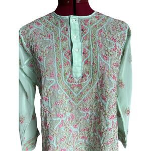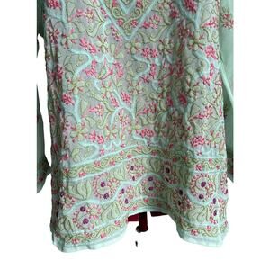 Jest Jewels Vintage Size Medium Chartreuse Floral Embroidered Shear Tunic Top