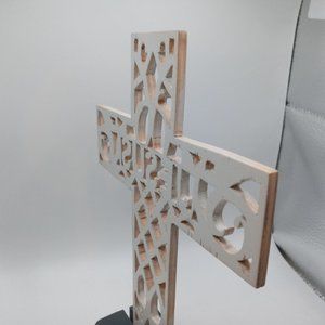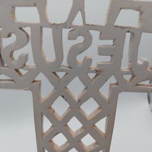 Jesus Cross Folk Art Sculpture Scrollwork Handmade Christian Easter OOAK Vintage