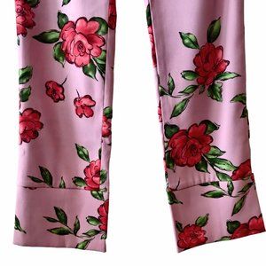 Jesus Diamante Womens Pink Allover Red Roses Back Slit Cuff Straight Pants XS
