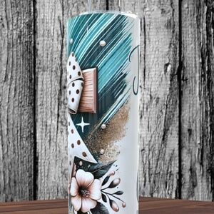 The 20oz Stainless Steel Skinny Tumbler is a stylish and functional drinkware option, crafted using sublimation for vibrant designs. It features a sliding lid and a straw, with a double wall construction that keeps beverages hot for up to 3 hours and cold for up to 9 hours. Made from BPA and lead-free materials, its no sweat design ensures dryness for your hands, while the durable and unbreakable body promotes longevity. For optimal care, it is recommended to hand wash only and avoid microwaving; its slim design conveniently fits in most car cup holders.