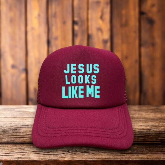 Jesus Looks Like Me Mens Trucker Hat Maroon Blondie Debbie Harry Rock N Roll Cap